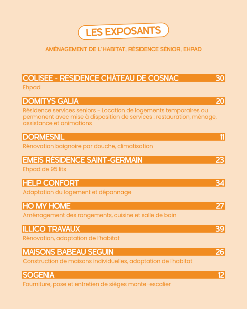 Retrouvez ici le plan complet et par thématiques du Salon du Sénior 2025
